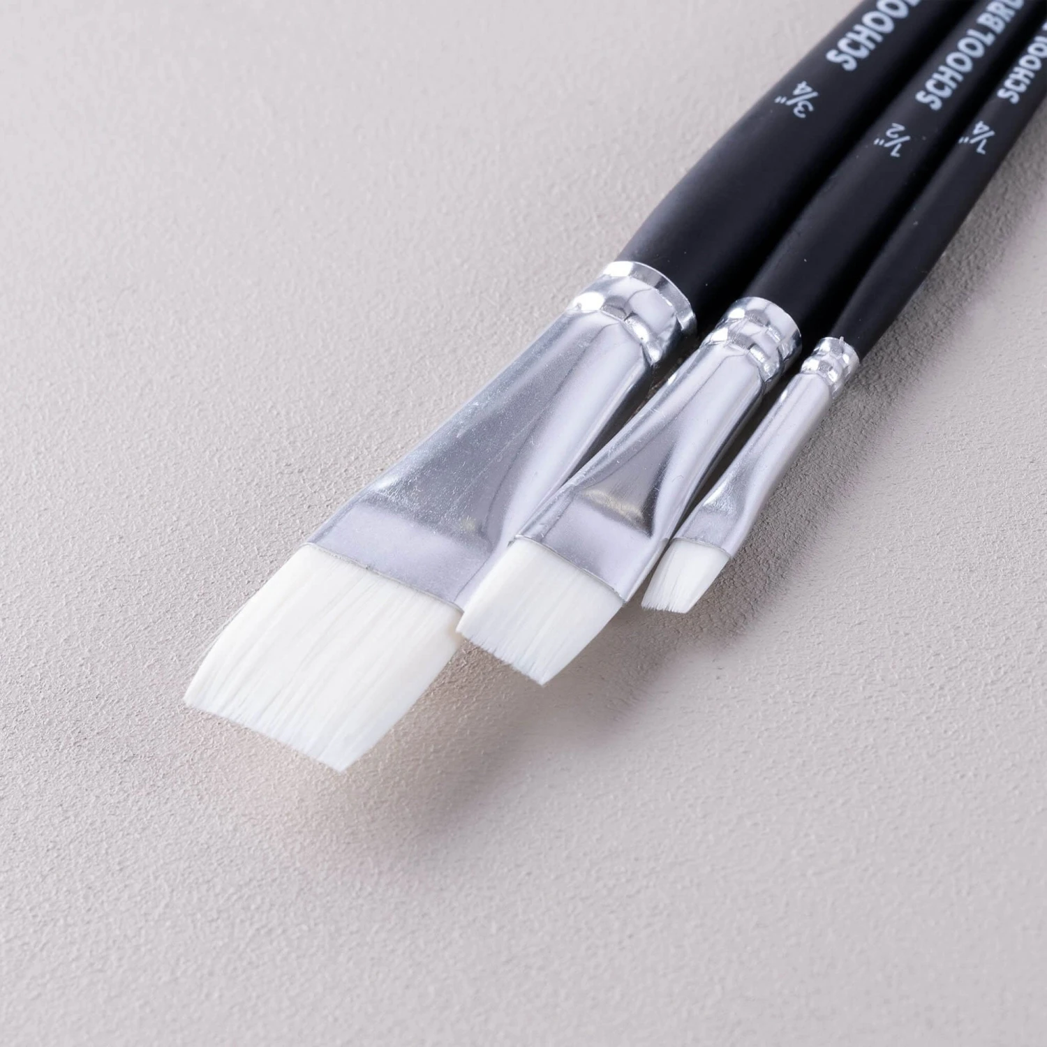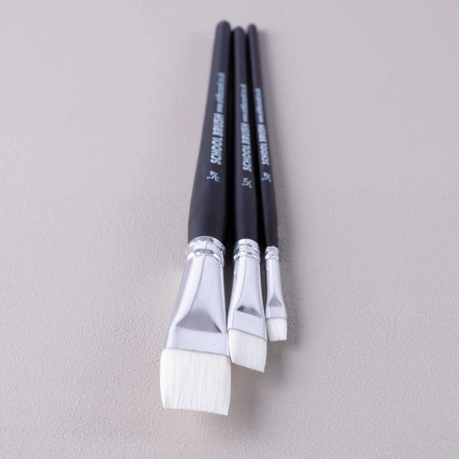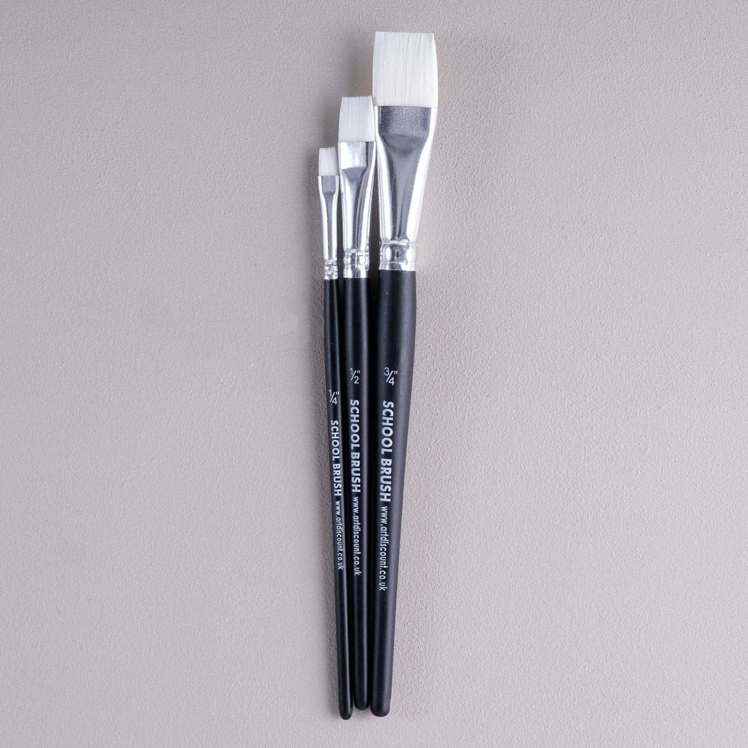 Made especially for ARTdiscount, these Flat School Brushes come in packs of 10, making them an excellent value for educators and art classes. Flat/One Stroke brushes enable you to produce broad, fine strokes, making them ideal for blocking, lettering, or wherever a sharp edge is required.