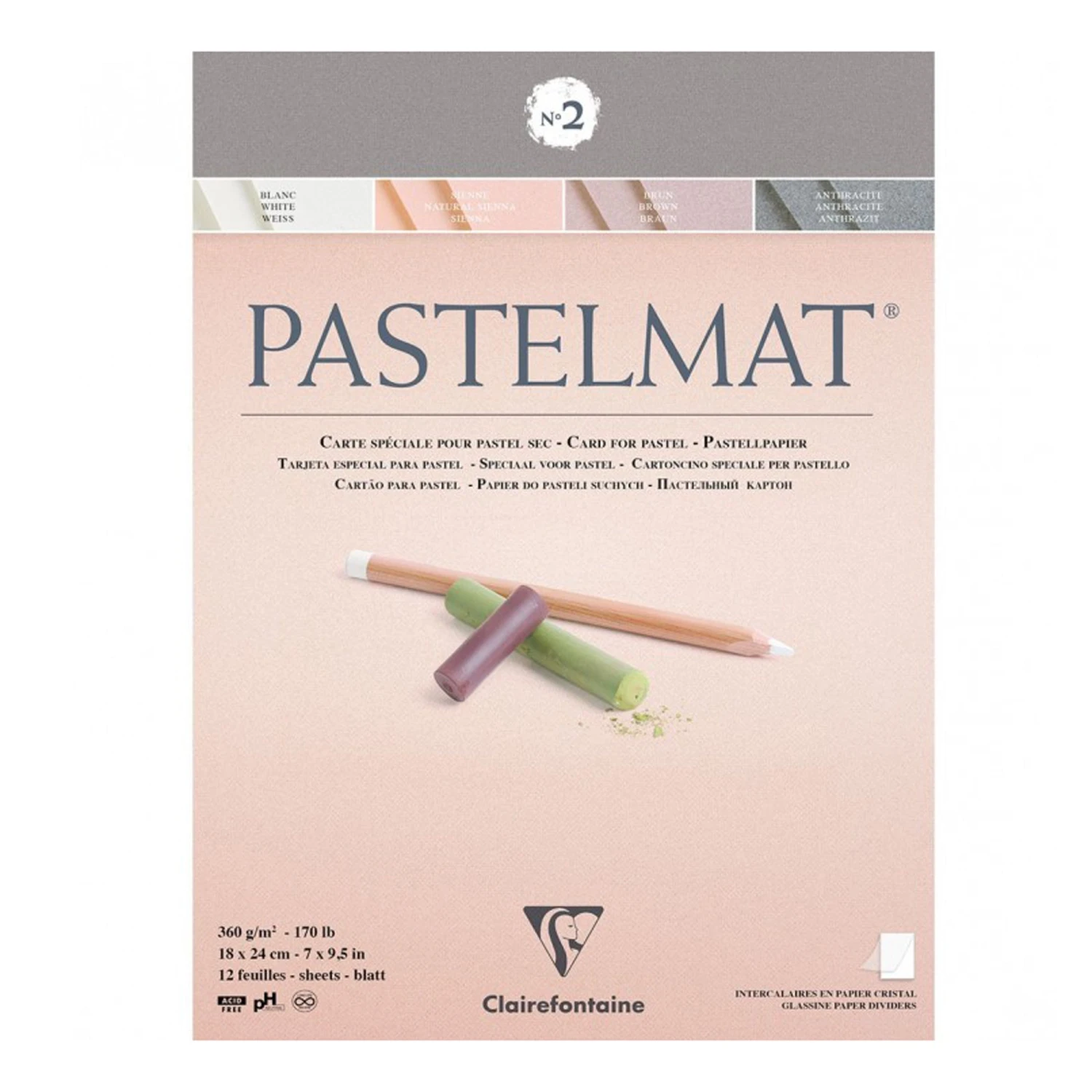 The acid free Pastelmat is a cardboard on which thin fibres of cellulose are fixed and resistant, keeping its original properties after being rubbed or wet. In this pad each sheet is protected by a sheet of Crystal paper.Â