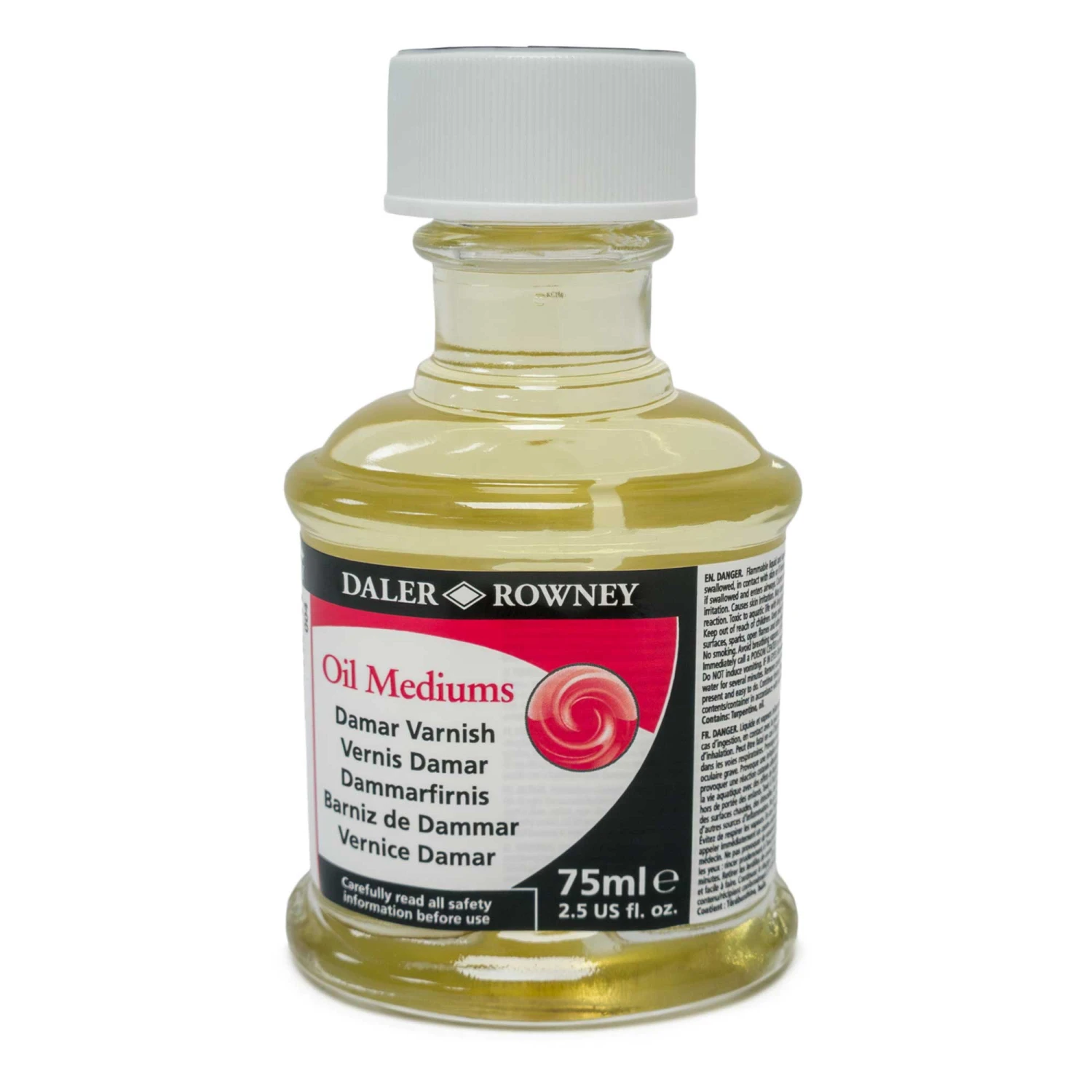 Damar is a resin-based varnish that, when mixed with oil paint mediums, thins the paint, increases its transparency, and speeds drying time.