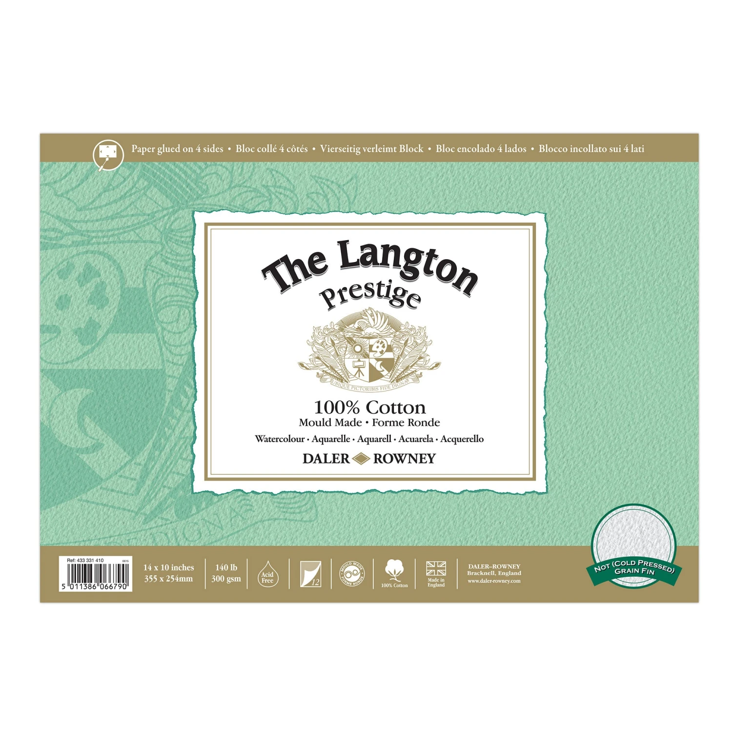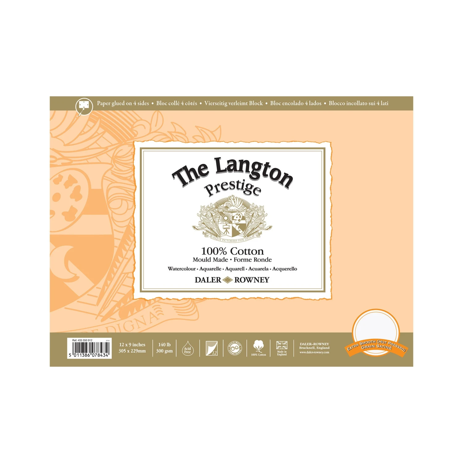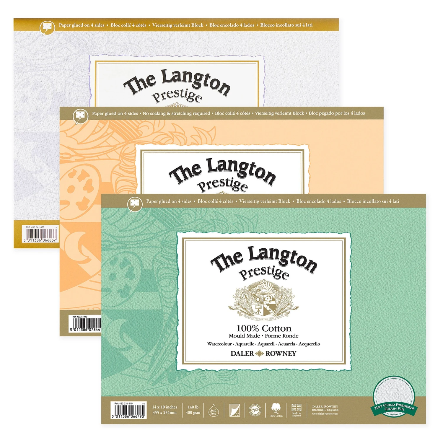 The Langton Prestige is a superior-quality watercolour paper manufactured using 100% cotton, the highest quality material for watercolour paper. Made traditionally on a cylinder mould machine, the paper features a natural whiteness with a soft touch and distinctive texture. Suitable for Professional artists and advanced students.