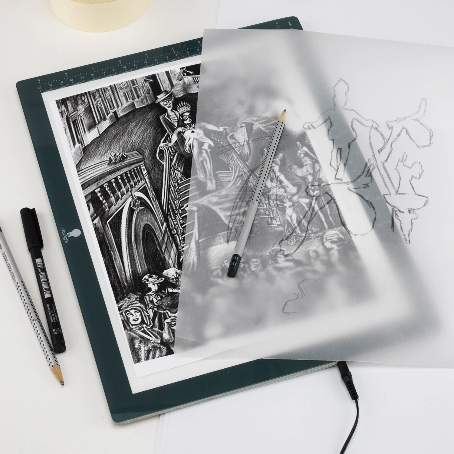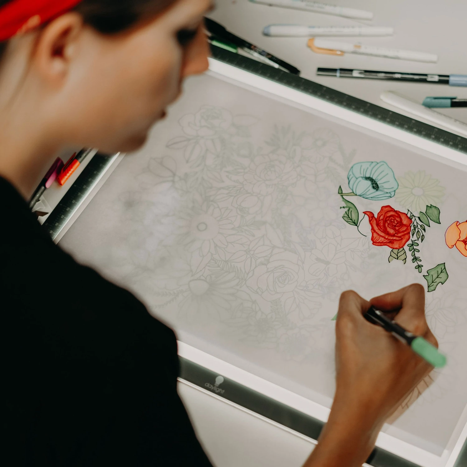 Ultra bright, ultra slim, ultra light, the Daylight Wafer lightbox is your must have tool for tracing, on paper or fabric. LED lightbox for an even brightness from edge to edge, the light is dimmable to suit paper weight and fabric thickness and include a handy marking guide on the sides (inches and centimetres).