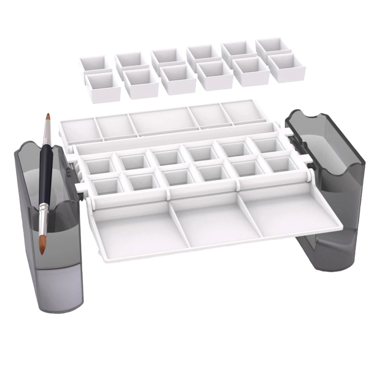 It transforms in seconds to a complete, professional palette with a sturdy pedestal base that’s great on uneven surfaces. Just slip it in a pocket, purse or daypack and you’ll have everything you need for travel, urban sketching, nature journaling and plein air painting.