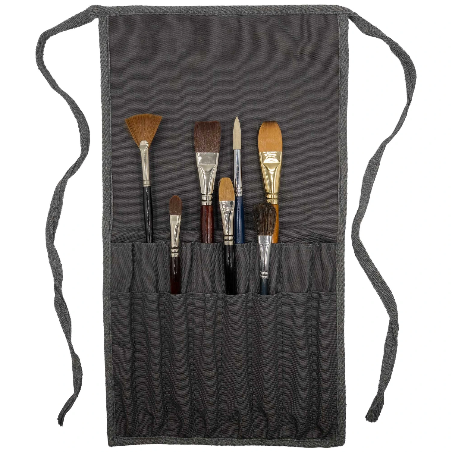 Isomars Grey Canvas Brush Waist Apron is a durable and lightweight essential for artists. Crafted from 10oz canvas, it features 15 pockets for easy brush access. The sturdy stitching ensures longevity, and its compact size (18″ H x 10″ W) strikes the perfect balance between convenience and practicality. Elevate your artistry with this stylish and functional apron, keeping your brushes organised on the go.