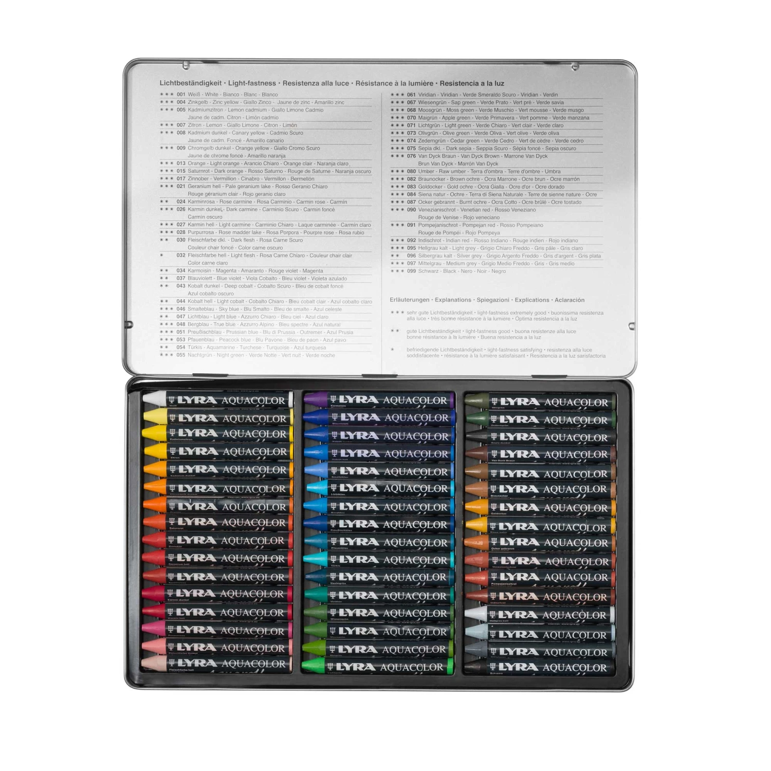 Lyra Aquacolor water-soluble pastel crayons are perfect for the most demanding professional graphic designer. They are extremely highly pigmented which results in striking colour brilliancy and high lightfastness. They are water-soluble and easy to blend, allowing an almost unlimited range of shades.