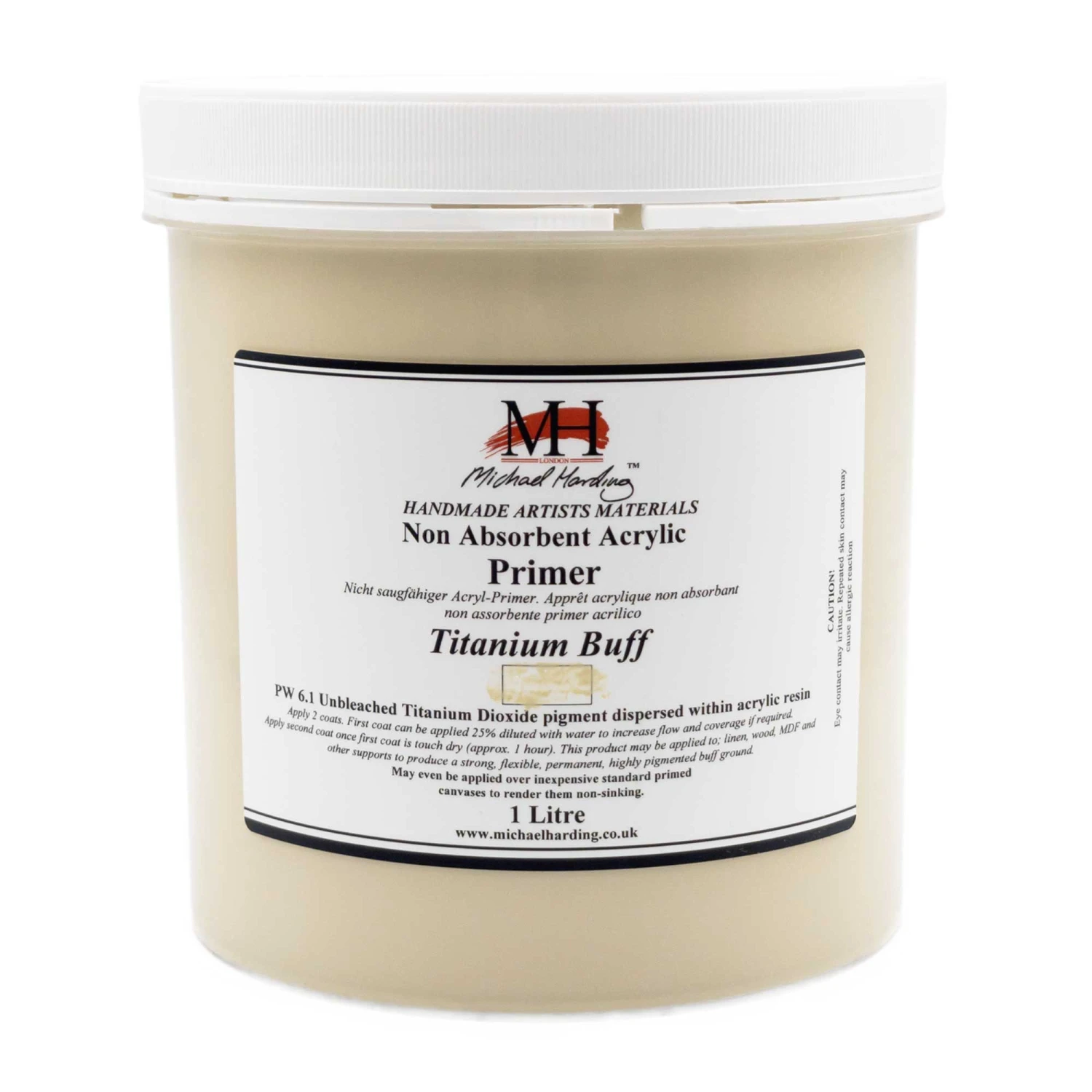 Michael Harding Non-Absorbent Acrylic Primer provides a strong bond to the layers of paint applied, while ensuring they have just enough tooth so as not to be greasy in feel. As a result, after painting upon non absorbent acrylic primer, oil paint colours look as though as they have just been brushed on to the canvas.Â