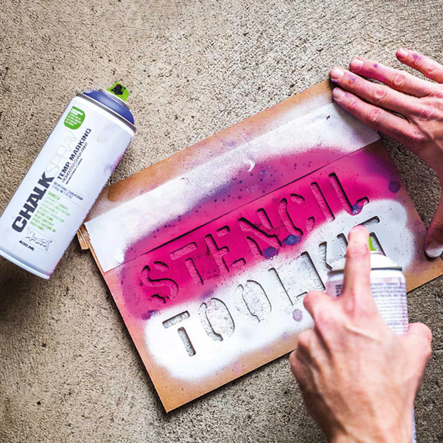 Montana CHALKSPRAY is a chalk-based pigment spray, ideal for outdoor temporary marking as well as for indoor studio artwork. It is available in 10 powerful colour shades that are deep matte and high covering.