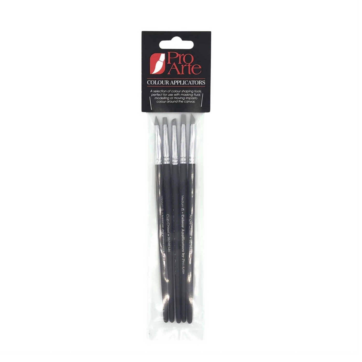 These Colour Applicators from Pro Arte are ideal for moving impasto paint around the canvas. They can also be used as a pastel blending tool and even for use with masking fluid. They feature rubber silicone tips which can be used as a brush, a tool for carving textures into wet paint, and or for blending.