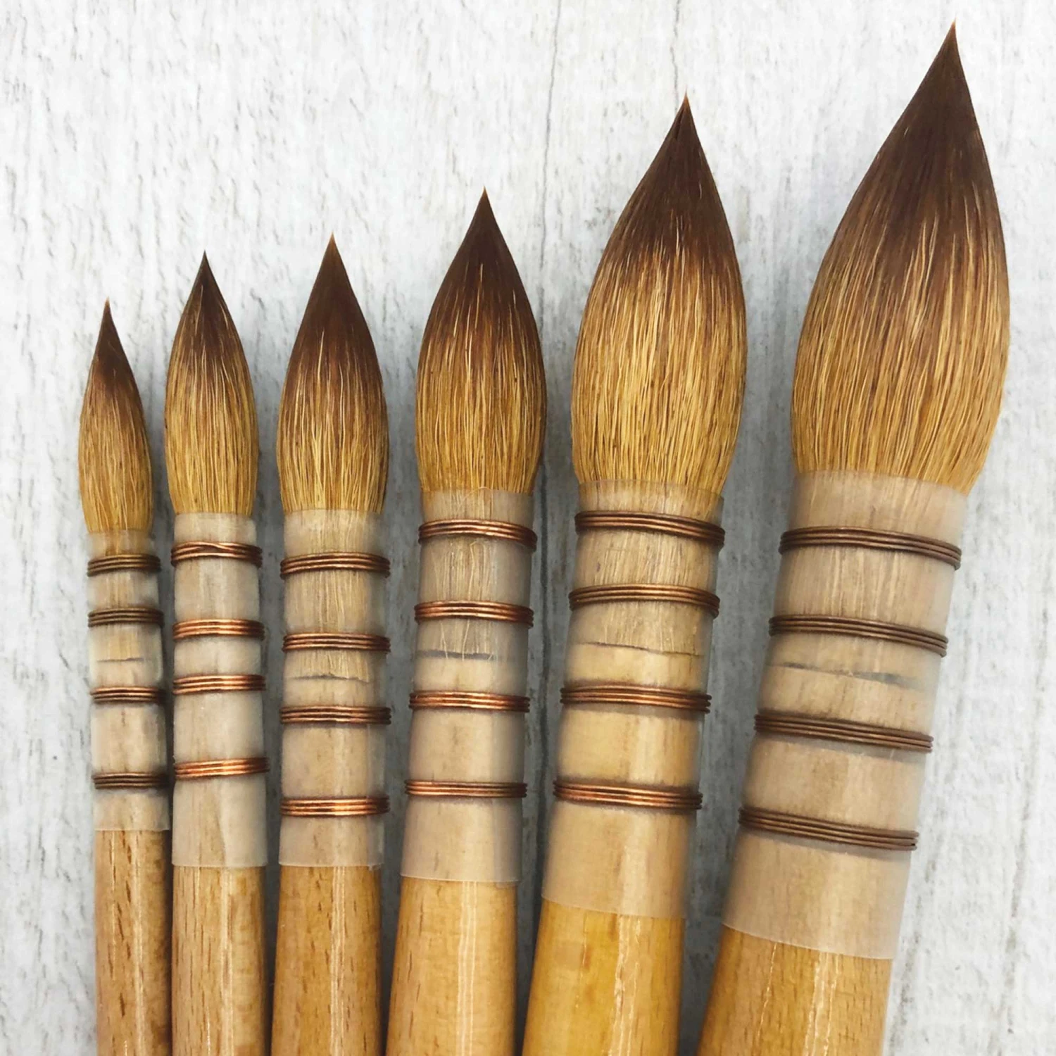 The result… A satisfying blend of synthetic and natural hair manufactured in a traditional wire mop style with a choice of eight sizes. It looks like sable, it feels like sable and it works like sable.