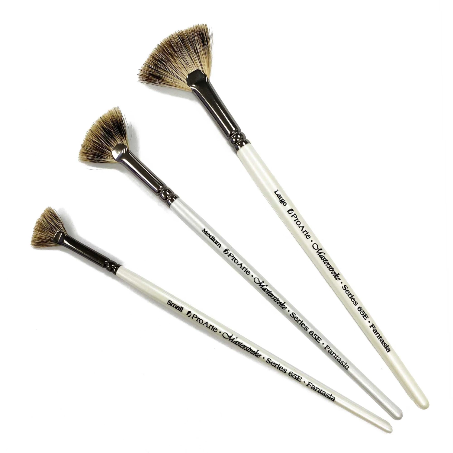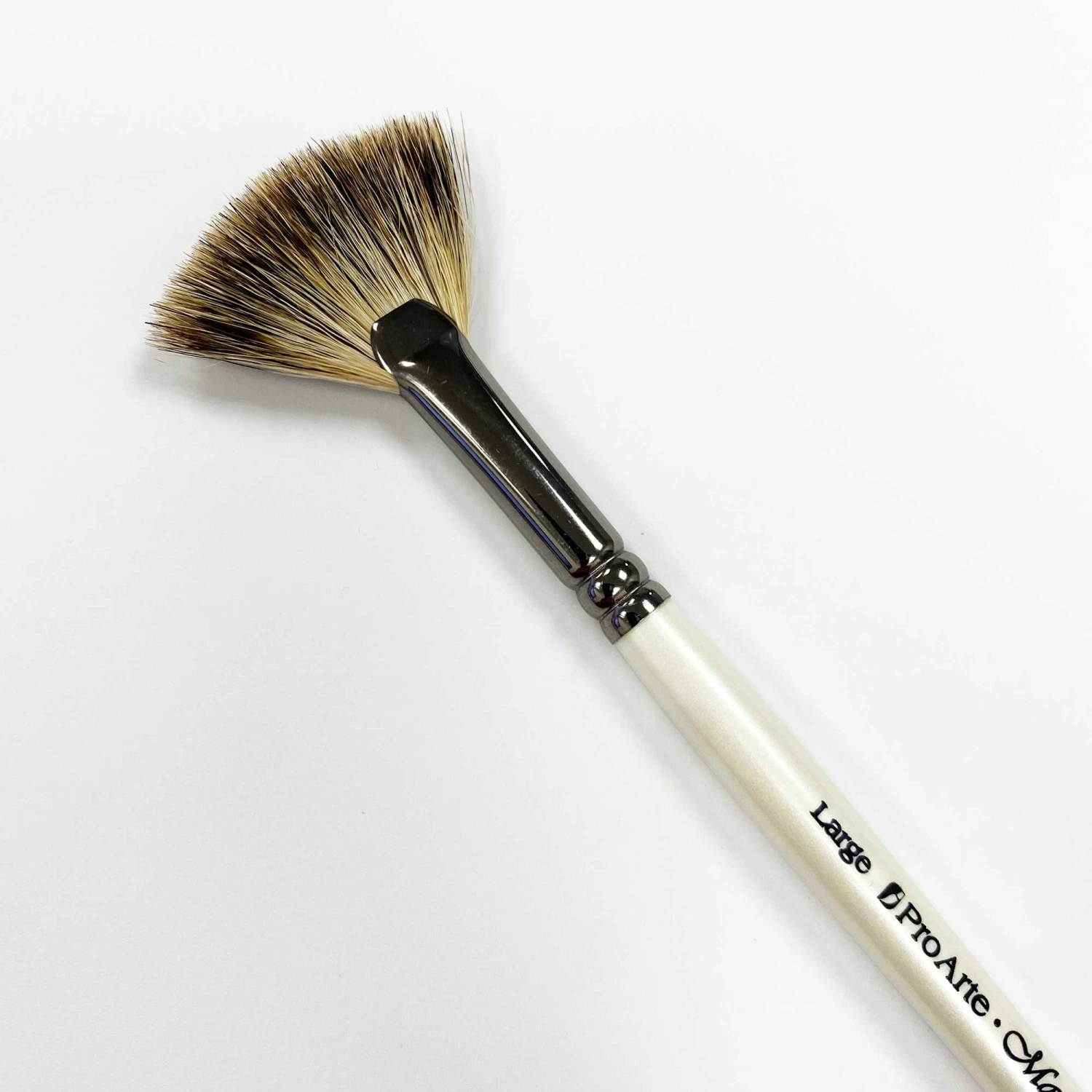 This soft natural haired brush is ideal for painting trees and grasses. Perfect for blending and washes. The brush is fan-shaped and holds a lot of paint.
