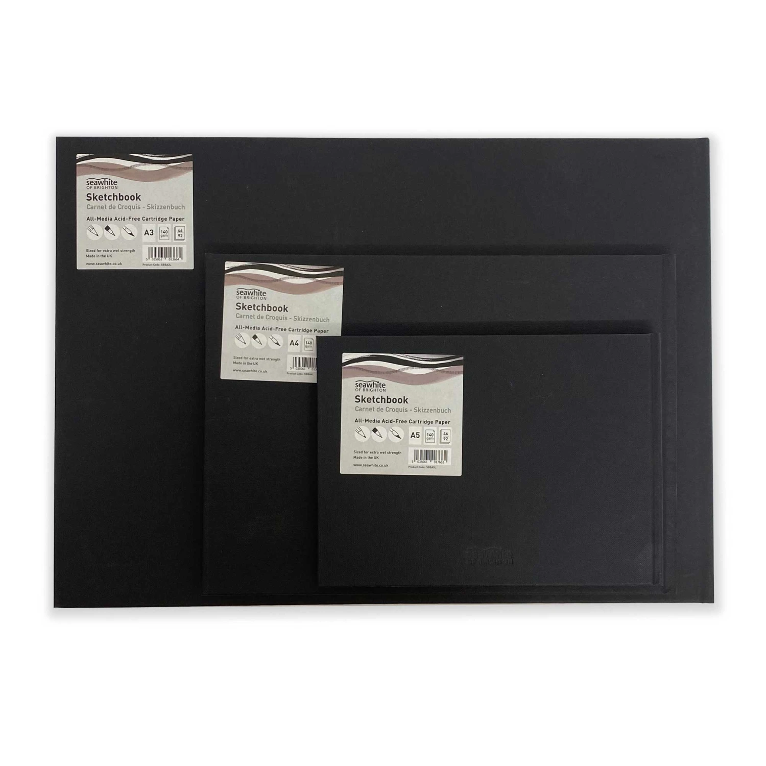 This landscape sketchbook from Seawhite of Brighton features an attractive black cloth textured cover, with 46 sheets (92 pages) of acid-free, 140gsm all-media cartridge paper inside. The paper is sized to perform with both wet and dry media, making for an incredibly versatile sketchbook suitable for all artists.