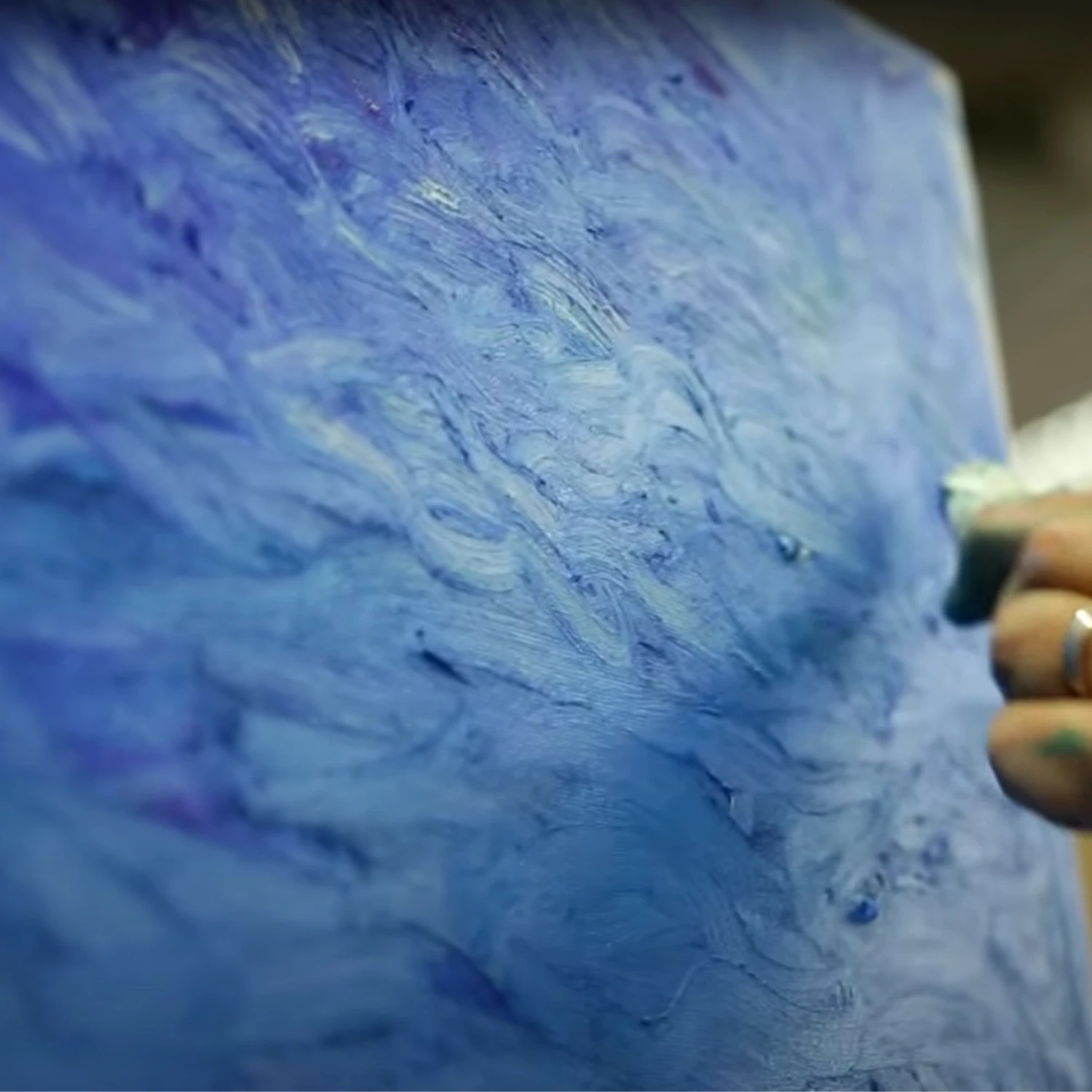 Dilute and blend with turpentine or mineral spirits and cut into and scrape layers of oil colour with palette knives.