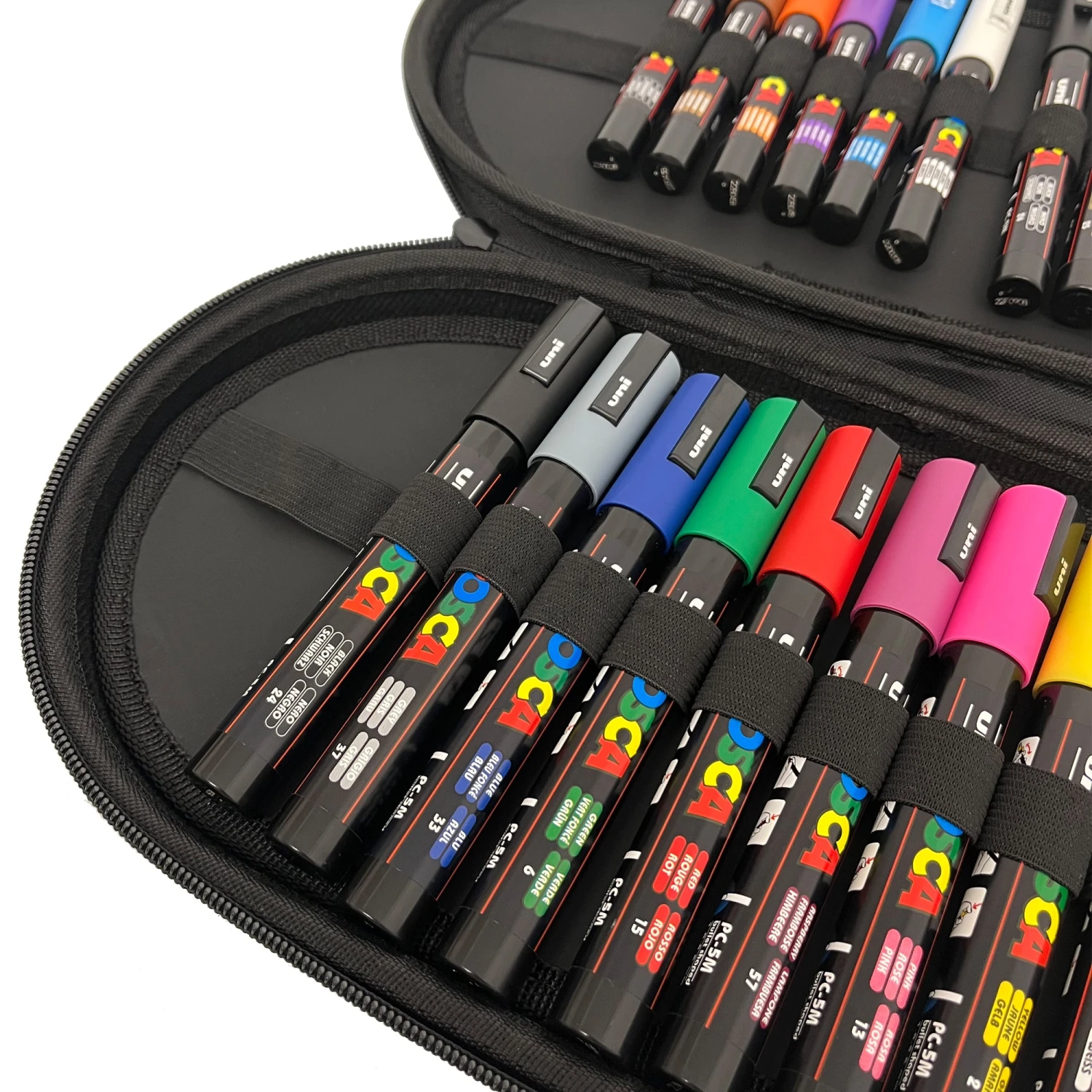 Assorted set contains 24 POSCA markers in a zipped case.Â