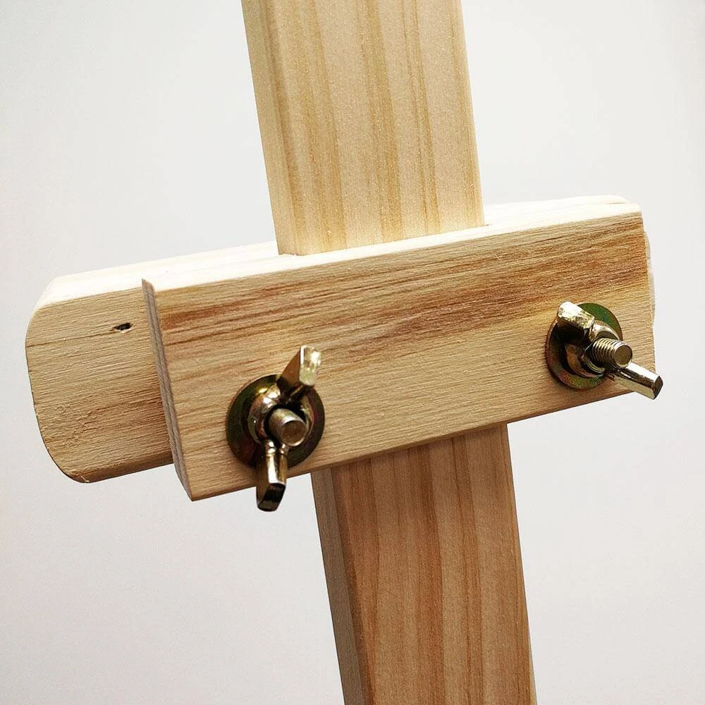 Pinewood construction with both the base bar and top clamp adjustable in seconds.Â