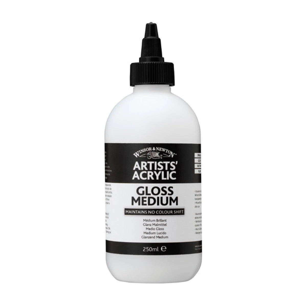 GLOSS:Â This medium increases the depth, transparency and flow of the colour making it ideal for blending or fine detail work. It can be used in thicker layers than the Glazing Medium and provides an even gloss finish. This medium dries completely clear and maintains no colour shift from wet to dry when used with Winsor & Newton Artists’ Acrylic.